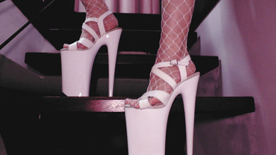 Dominatrix Eva látex vestido blanco solo de juguetes cbt tacones fetiche bdsm culona milf caliente
